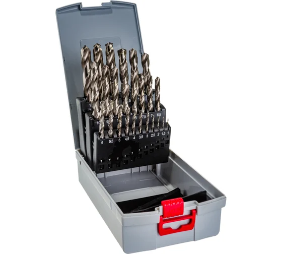 изготовлен из быстрорежущей стали с титан-нитридным покрытием (HSS-TiN), что обеспечивает высокую износостойкость и длительный срок службы. Сверла предназначены для сверления сквозных и глухих отверстий в легированной и нелегированной стали с пределом прочности до 900 Н/мм², а также в ковком чугуне, металлокерамических сплавах на основе железа, мельхиоре, меди, бронзе и плексигласе. Самоцентрирующееся острие с крестообразной подточкой по DIN 1412 C обеспечивает точное позиционирование без предварительного накернивания. Набор не предназначен для сверления алюминия и рекомендуется использовать с охлаждающей жидкостью. Поставляется в удобном и прочном боксе ProBox для безопасного хранения и транспортировки.