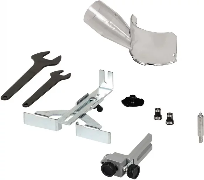 Комплектация: параллельный упор, наконечник циркуля, направляющий ролик, ключи