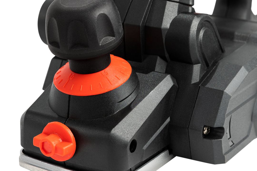 Рубанок оснащен высококачественной алюминиевой подошвой, что гарантирует долговечность и стабильность при работе. Регулировка глубины строгания и наличие V-образной канавки на подошве позволяют снимать фаски с отличной точностью, обеспечивая высококачественное завершение работы. Патрубок для подключения пылесоса или мешка для сбора стружки помогает поддерживать чистоту рабочего места.