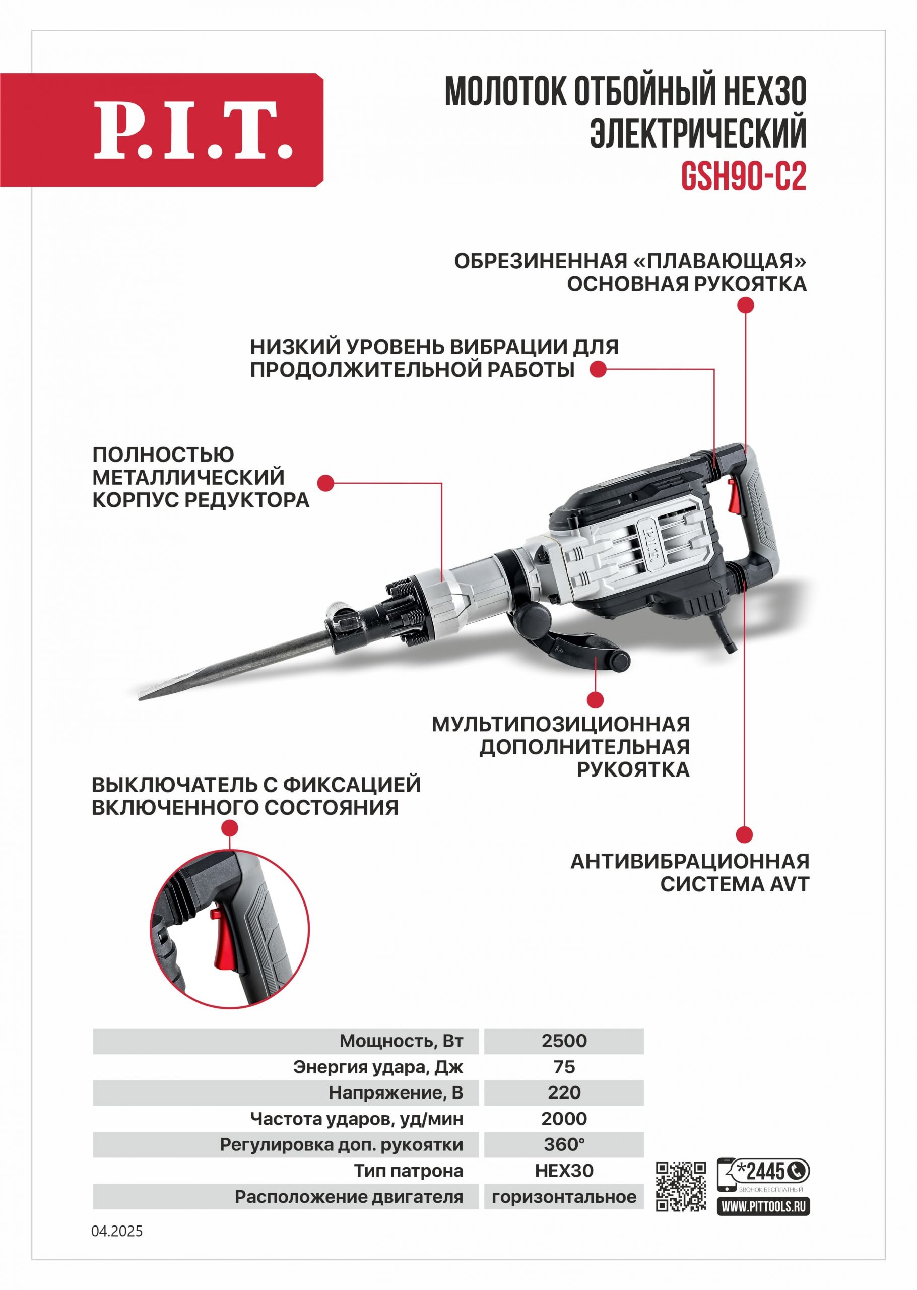 Отбойный молоток HEX 30 GSH90-C2 предназначен для разрушения конструкций из бетона, железобетона, камня, кирпичной и каменной кладки, а также для работы с грунтом и асфальтом. Это незаменимый инструмент для профессионалов, занимающихся демонтажом и строительными работами.