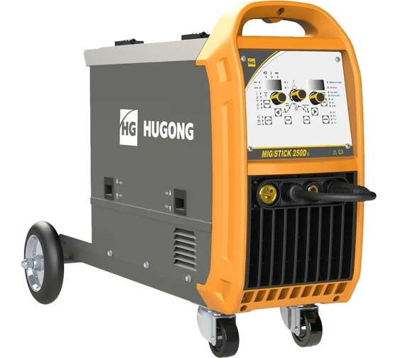 Сварочный полуавтомат HUGONG MIG/STICK 250D III — это инверторный сварочный аппарат для полуавтоматической сварки проволокой (MIG/MAG) и ручной дуговой сварки MMA (Stick), построенный на современной IGBT-инверторной технологии. Он обеспечивает стабильную сварочную дугу, экономичное энергопотребление и устойчивость к колебаниям сетевого напряжения, что позволяет использовать его как в мастерской, так и на объекте.