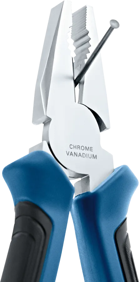 Плоскогубцы изготовлены из прочной хромованадиевой стали, обладающей высокой прочностью и износостойкостью даже при регулярной эксплуатации. Эргономичные двухкомпонентные рукоятки обеспечивают комфортный хват и уменьшают нагрузку на руку при длительной работе. Благодаря точно обработанным губкам инструмент обеспечивает надёжное удержание предметов, а встроенные режущие кромки позволяют эффективно резать мягкую и среднюю по твердости проволоку без дополнительных инструментов.