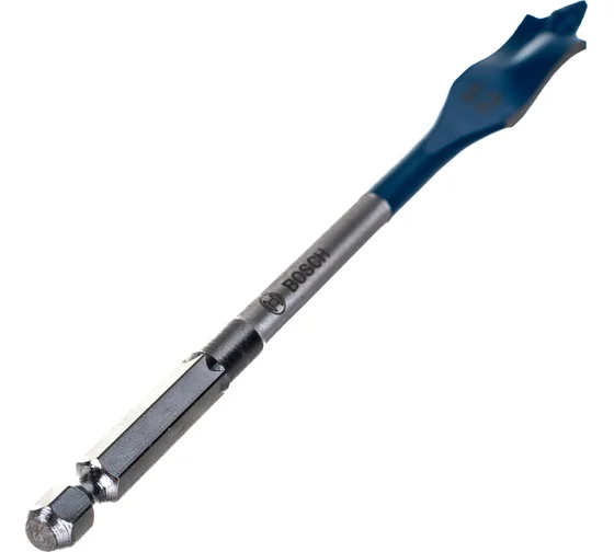 Самозатягивающееся остриё обеспечивает лёгкое начало сверления без предварительного накола, а острые режущие кромки гарантируют ровное и точное отверстие. По сравнению с обычными плоскофрезерными сверлами данная модель сверлит до трёх раз быстрее, что значительно экономит время при работе.