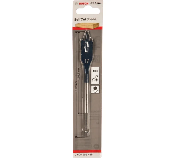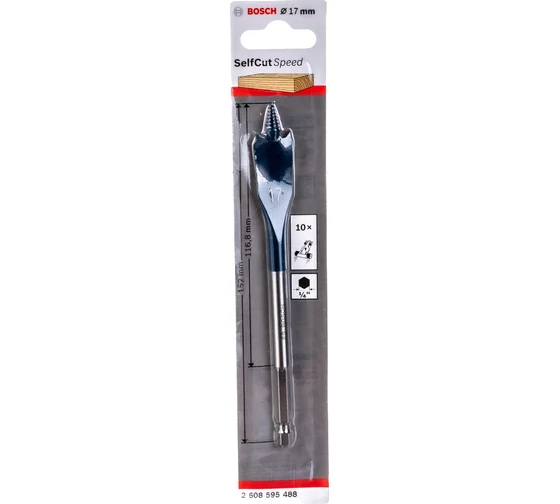 Перовое сверло Bosch 2608595488 предназначено для быстрого и точного сверления твёрдой и мягкой древесины, а также лёгких строительных материалов, таких как гипсокартон. Благодаря самозатягивающемуся острию и остро заточенным режущим кромкам, сверло обеспечивает чистое и аккуратное отверстие без задиров и сколов.