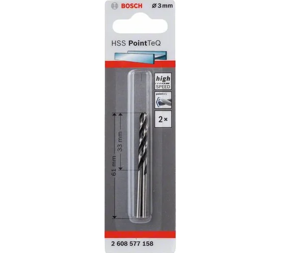 Сверло спиральное по металлу Bosch PointTeQ (2шт; 3х33х61мм) 2608577158