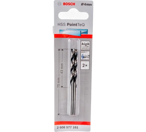Сверло спиральное по металлу Bosch PointTeQ (2шт; 4х43х75мм) 2608577161