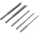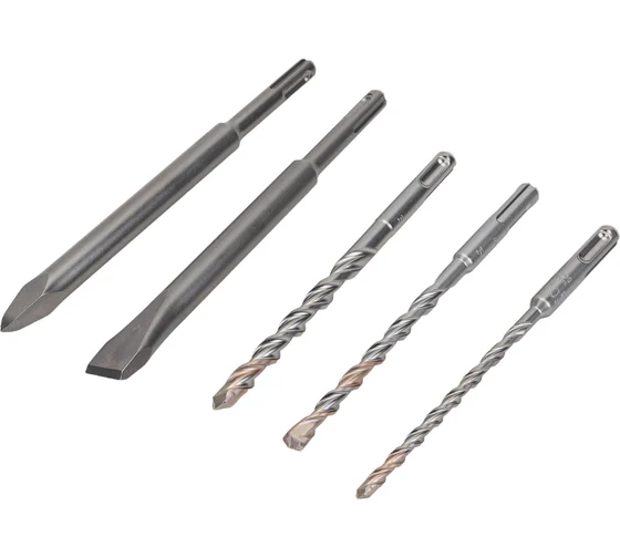 Технические характеристики: тип хвостовика SDS-plus, количество предметов в наборе 5 штук, максимальный диаметр буров 10 мм, минимальная длина 160 мм, комплект включает буры и долото, максимальная длина буров 160 мм, вес нетто 0.45 кг, габариты без упаковки 300×40×40 мм.