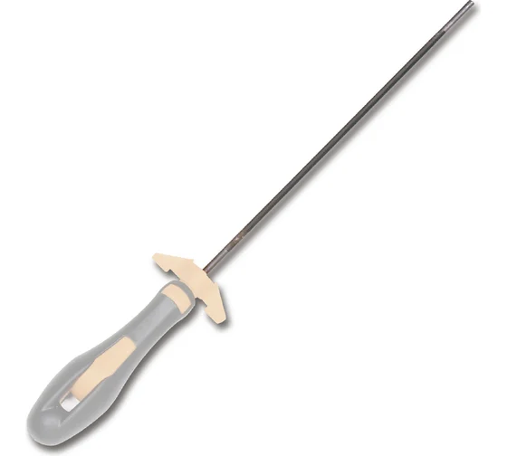 Диаметр напильника — 4 мм, длина — 200 мм. Подходит для заточки режущих зубьев цепей с шагом 1/4″ и 3/8Р. Для точного результата рекомендуется начинать заточку с самого короткого зуба и выравнивать остальные зубья по длине, соблюдая правильный угол заточки.