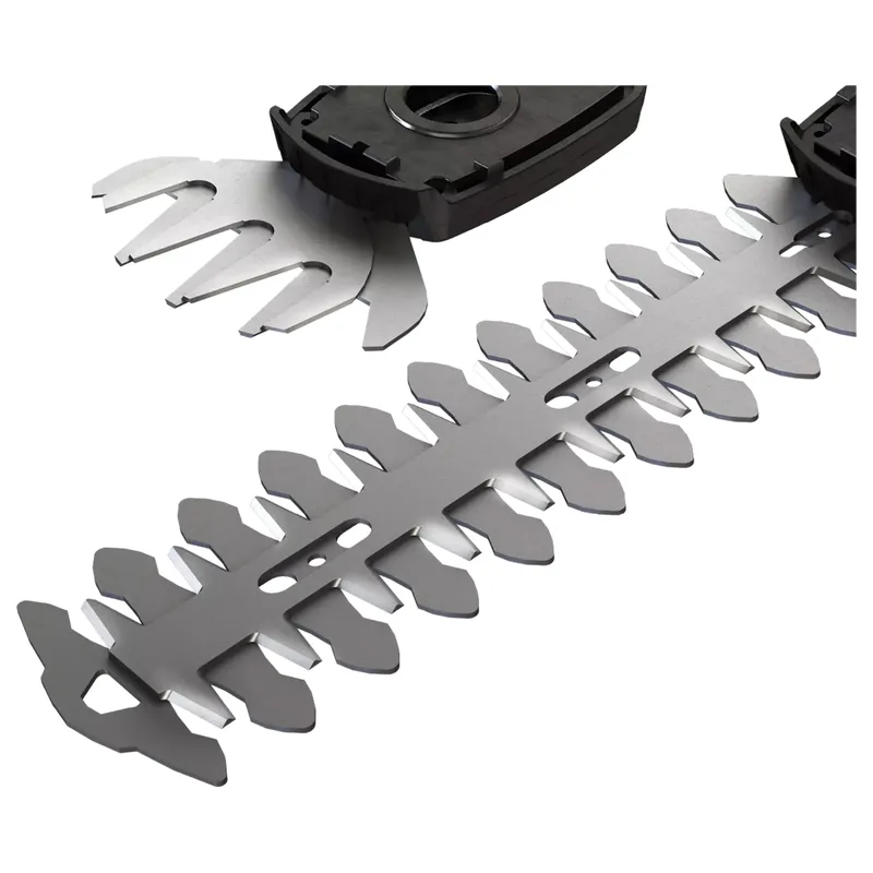 Нож для газона длиной 100 мм идеально подходит для подравнивания краёв газона, а двусторонние лезвия кустореза с лазерной резкой и алмазной шлифовкой обеспечивают аккуратный срез кустарников и живых изгородей. Инструменты легко заменяются без использования дополнительных приспособлений.