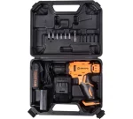 Вес устройства всего 1,25 кг, эргономичная прорезиненная рукоятка обеспечивает удобный и надёжный хват. Шуруповерт поставляется в компактном пластиковом кейсе вместе с зарядным устройством и набором бит.