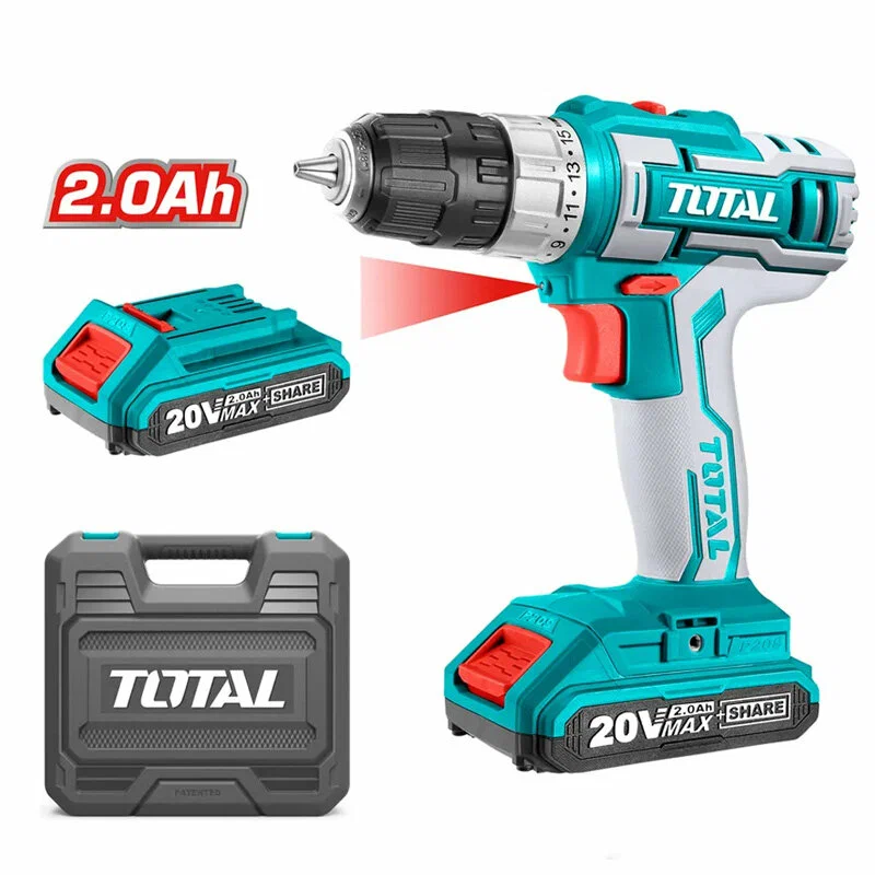 Аккумуляторная дрель-шуруповерт TOTAL TDLI200215 — мощный и надёжный инструмент для бытового и полупрофессионального использования. Работает от аккумулятора Li-Ion 20 В, обеспечивая высокую производительность и мобильность без проводов.