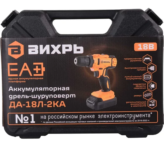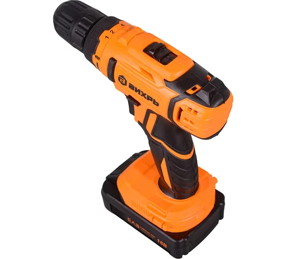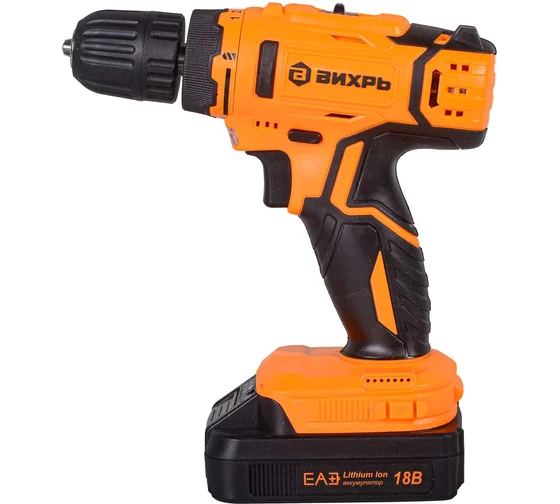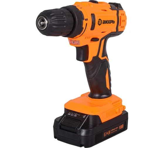 Дрель-шуруповерт аккумуляторная ВИХРЬ ДА-18Л-2КА предназначена для закручивания шурупов и сверления отверстий. Изготовлена из высококачественных материалов. Функция реверса упрощает выведение застрявшего в материале сверла и позволяет откручивать шурупы. Два аккумулятора в комплекте обеспечивают долгую работу без перерыва.