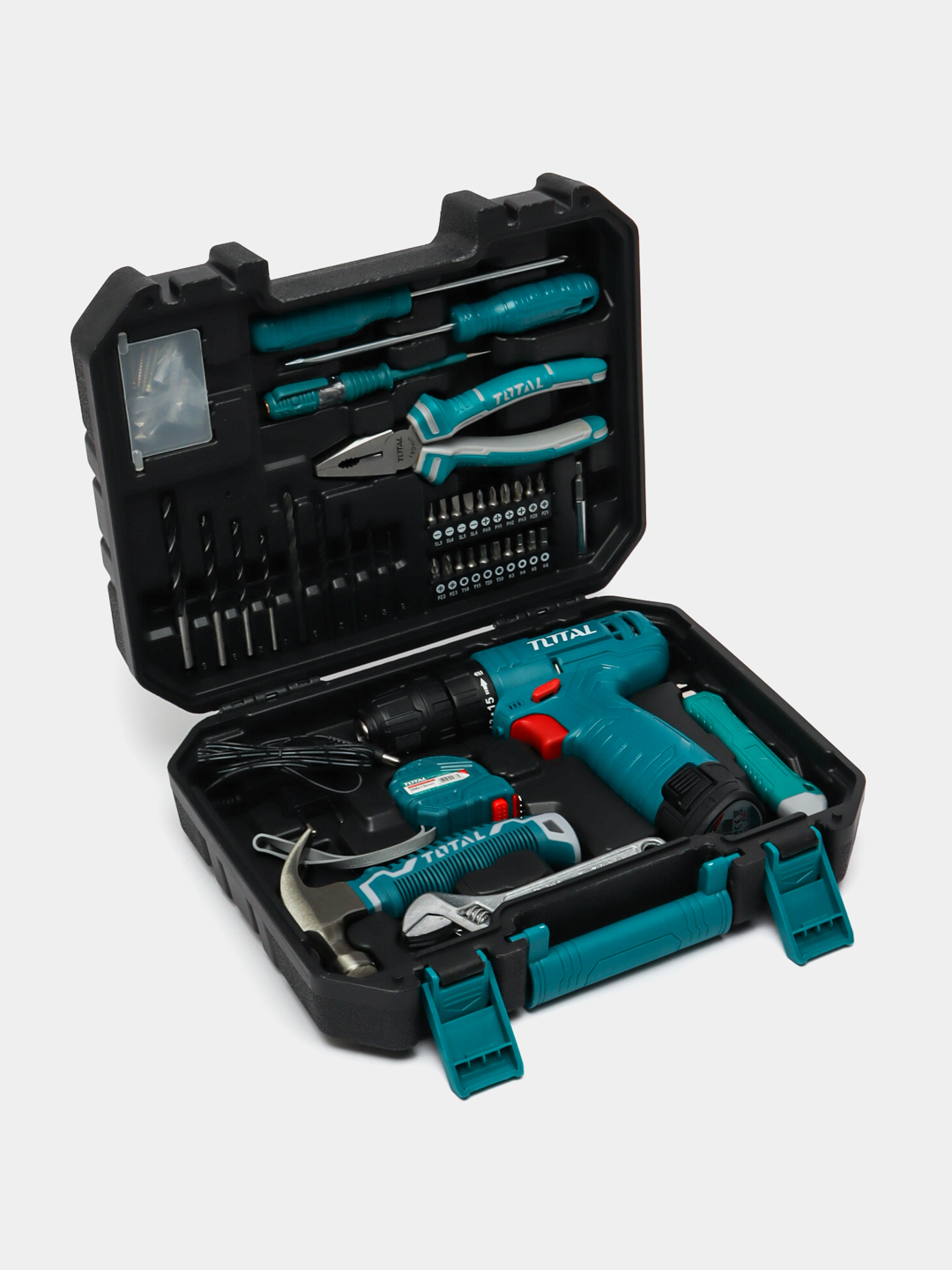 Все инструменты удобно размещены в прочном кейсе. Набор TOTAL THKTHP10812 станет надежным помощником для сверления, закручивания, измерений и мелкого ремонта, обеспечивая полный комплект для решения разнообразных бытовых и профессиональных задач.