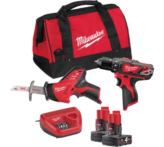 Технические характеристики Milwaukee М12 ВPP2В-402В 4933441230: установлен щеточный двигатель, в набор входят два инструмента и два аккумулятора серии Milwaukee REDLithium. Аккумуляторы типа Li-Ion работают от напряжения 12 В и обладают ёмкостью 4 А*ч. Комплектация включает дрель-шуруповерт и сабельную пилу. Поставляется набор в удобной сумке.