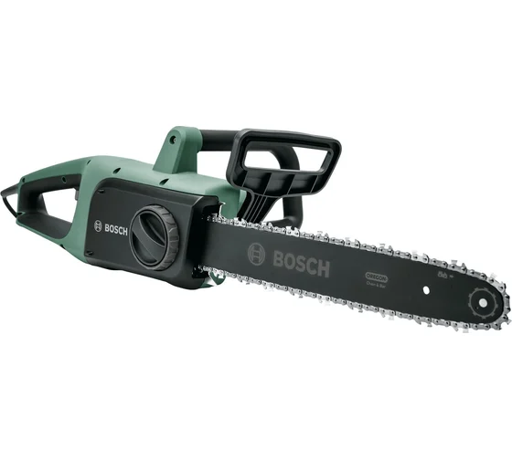 Цепная пила Bosch UniversalChain 35 — это сетевой электрический инструмент для распиловки древесины, веток, бревен и заготовки дров в саду или приусадебном участке. Она оснащена мощным электродвигателем 1800 Вт, который вместе со скоростью цепи до 12 м/с обеспечивает быстрый и эффективный процесс пиления. Длина пильной шины составляет 35 см, что даёт максимальный диаметр распила около 30 см — оптимальный размер для большинства бытовых задач. Пила оборудована автоматической смазкой цепи, обеспечивающей стабильную и длительную работу без необходимости частой доливки масла. Система SDS‑натяжения цепи позволяет регулировать и менять цепь без дополнительных инструментов, что значительно упрощает обслуживание. Боковой масляный бак с привязанной крышкой облегчает доливку масла и контроль его уровня. Вес инструмента около 4,2 кг и эргономичный корпус делают работу более удобной и манёвренной. Надёжный защитный кожух и тормоз цепи повышают безопасность эксплуатации. Универсальная конструкция подходит как для начинающих, так и для опытных пользователей, которым нужна надёжная электропила для дома и сада.