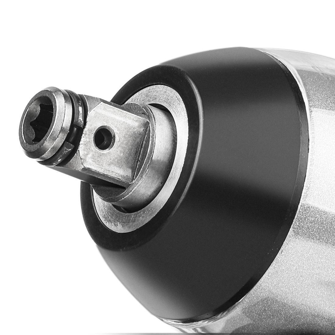 Уникальный патрон «2в1″: комбинированный держатель насадок с внутренним шестигранником ¼» для ударных бит и квадратом ½» для головок, что делает гайковерт универсальным для различных крепежей