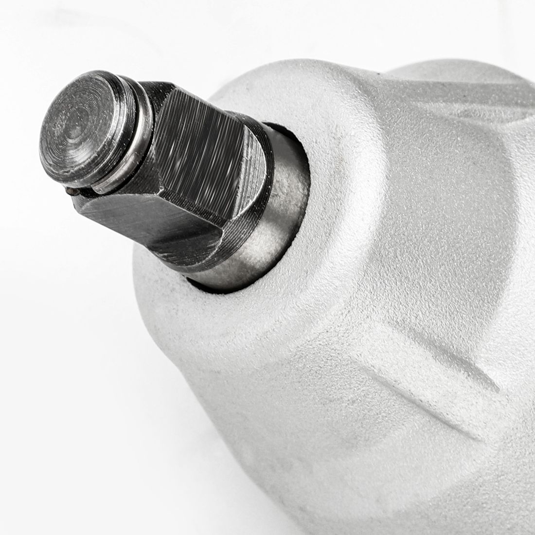 Эргономичная обрезиненная рукоятка, расположенная в центре устройства, обеспечивает отличную балансировку и комфорт при длительном использовании, снижая усталость рук. Прочный корпус редуктора из алюминиевого сплава эффективно отводит тепло и способствует долговечности инструмента.