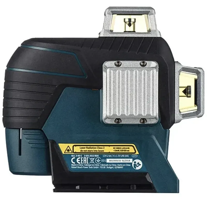 Лазерный нивелир Bosch GLL 3-80 C + BT 150 Professional проецирует три линии на 360°, позволяя одновременно работать в горизонтальной и вертикальной плоскостях. При использовании с приемником дальность действия увеличивается до 120 м в диаметре. Питание осуществляется от литий-ионного аккумулятора 12 В или от батарей типа AA.