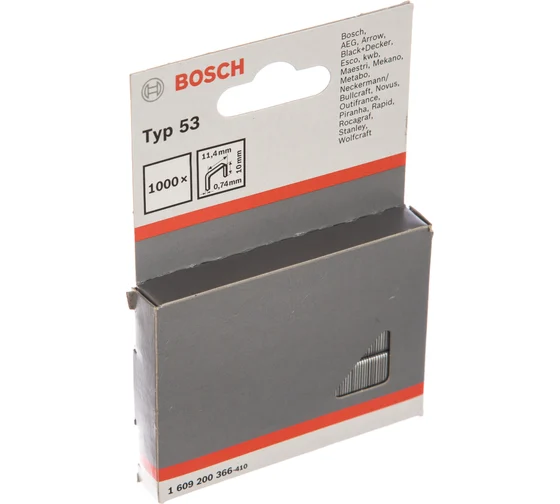 Скобы плоские для степлера Bosch (0,74х11,4х10мм 1000шт) 1609200366