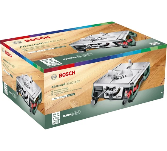 Пила Bosch AdvancedTableCut 52 оснащена инновационной системой NanoBlade, обеспечивающей ровный и чистый распил без вибраций. Благодаря компактным размерам и малому весу инструмент удобен в хранении и транспортировке.