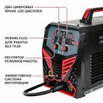Аппарат оснащен двумя цифровыми дисплеями и двумя регуляторами для точной настройки и контроля тока и напряжения. Удобное переключение между режимами сварки с индикацией активных режимов. Защита от перегрузки и перегрева значительно продлевает срок службы устройства.
