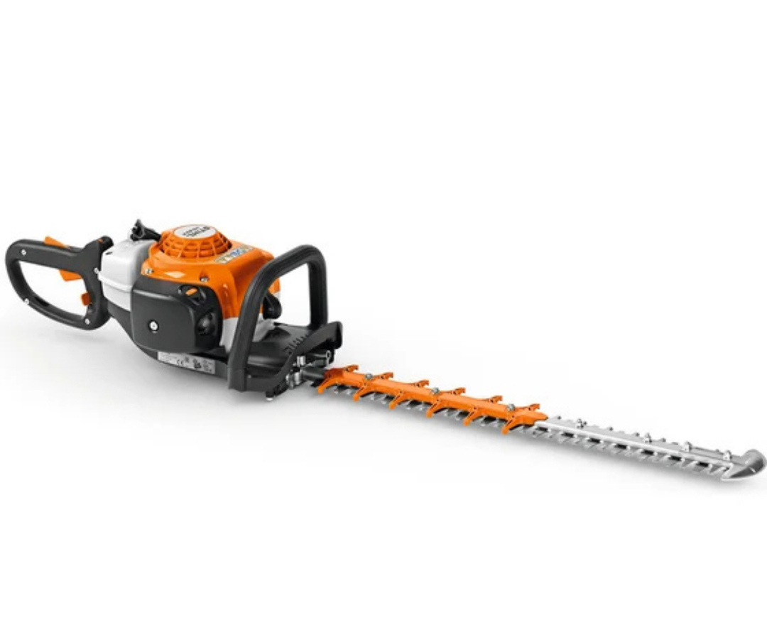 Бензиновый кусторез STIHL HS 82 T — профессиональный инструмент для ухода за живыми изгородями на частном участке. Оснащён двусторонним ножом длиной 75 см, который обеспечивает точный и ровный срез даже в углах насаждений. Рукоятка поворачивается на 90°, что позволяет легко работать в труднодоступных местах, а праймер упрощает запуск двигателя. Электронная система зажигания гарантирует бесперебойную работу мотора и снижает количество вредных выбросов. Аппарат оборудован антивибрационной системой, что уменьшает нагрузку на руки и плечи при длительной работе. Крышка масляного бака открывается без инструментов, а лёгкий вес устройства (5,3 кг) делает его удобным в эксплуатации и транспортировке.