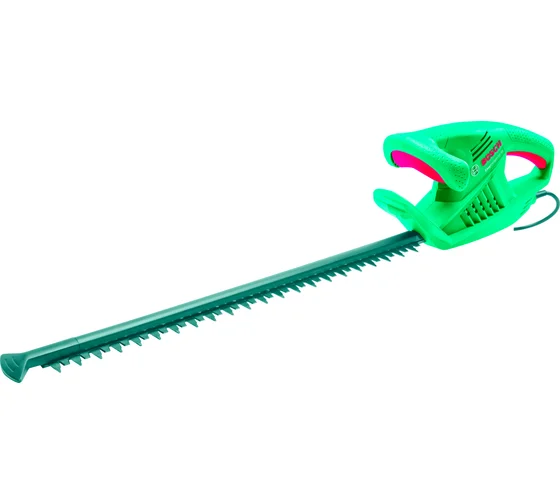 Электрический кусторез Bosch EasyHedgeCut 55 предназначен для ухода за низкими кустарниками и живыми изгородями. Оснащён мощным двигателем и двусторонним ножом, обеспечивающим чистый и аккуратный рез. Лёгкая конструкция и эргономичные рукоятки делают инструмент удобным в использовании, в том числе для пожилых людей и пользователей без большого опыта работы с садовой техникой.