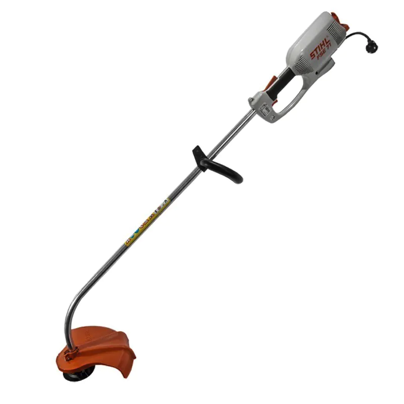 Электрический триммер STIHL FSE 71 — надёжный и удобный инструмент для ухода за небольшими приусадебными участками и аккуратного подравнивания травы вокруг деревьев, клумб и дорожек. Модель оснащена электрическим щёточным двигателем мощностью 0,54 кВт с верхним расположением, что обеспечивает хорошую балансировку и стабильную работу. Триммер комплектуется косильной головкой системы AutoCut C 05-2 с полуавтоматической подачей лески, которая гарантирует эффективное и ровное скашивание травы. Малый вес и дополнительная D-образная рукоятка округлой формы значительно облегчают управление инструментом и снижают утомляемость при длительной работе. Основная рукоятка имеет резиновую накладку, предотвращающую соскальзывание руки, а защитный кожух над режущим элементом обеспечивает безопасность пользователя, не допуская разлёта скошенной травы. В конструкции предусмотрено устройство разгрузки сетевого кабеля, которое защищает от случайного отключения вилки при натяжении провода.