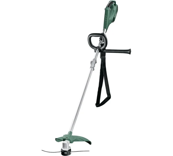 В комплект входят катушка с леской и трёхлопастный металлический нож, что позволяет быстро менять тип оснастки в зависимости от задачи. Электродвигатель мощностью 950 Вт обеспечивает стабильную и производительную работу без перегрузок. Верхнее расположение двигателя улучшает балансировку и предотвращает попадание пыли и влаги на мотор. Эргономичная D-образная рукоятка и регулируемый наплечный ремень обеспечивают удобство в эксплуатации и снижают нагрузку на руки оператора. Благодаря малому весу и оптимальной развесовке, триммер Bosch AFS 23-37 подходит даже для пожилых пользователей и женщин.