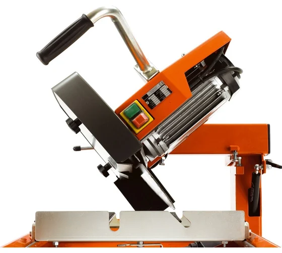 Съемные подпружиненные складные ножки позволяют одному оператору легко установить оборудование и обеспечивают удобство при транспортировке. Защитный кожух диска имеет особую конструкцию, дающую быстрый доступ к режущему диску, а система быстрого разъёма упрощает его замену. Дополнительно может использоваться сборный лоток для шлама, регулируемый для резов под углом 45° и 90°. Наклоняемая режущая головка обеспечивает возможность выполнения фасочных резов под углом до 45°.