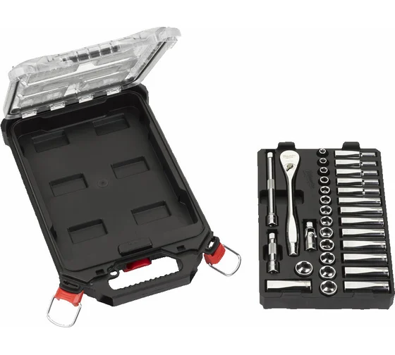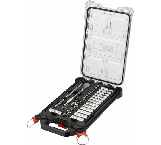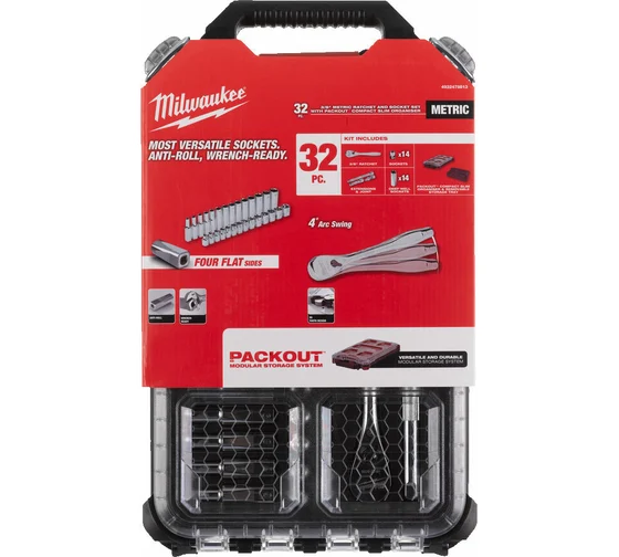 Набор метрических головок с трещоткой Milwaukee 3/8″ в компактном тонком органайзере PACKOUT, 38 ед. 4932478813 – профессиональное качество, быстрая доставка