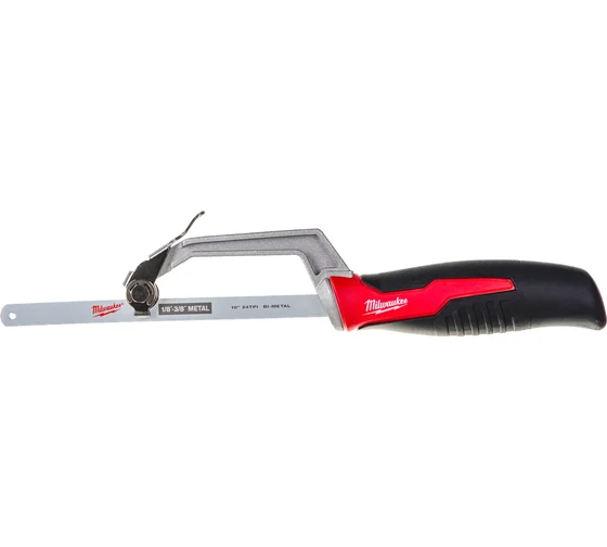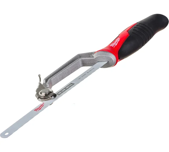 Компактная ножовка Milwaukee 48220012 предназначена для резки заподлицо и идеально подходит для работы в ограниченном пространстве. Минимальные размеры рамы обеспечивают удобство при манёврах, а жёсткое крепление полотна гарантирует устойчивость и точность реза. Обрезиненная двухкомпонентная рукоятка повышает комфорт и надёжность хвата. В инструменте можно использовать полотна длиной 10–12 дюймов; в комплект входит полотно 10″.