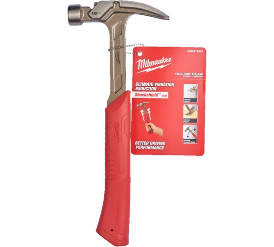 Стальной молоток Milwaukee с прямым гвоздодером 16 унций, 450 г 4932478653 – профессиональное качество, быстрая доставка