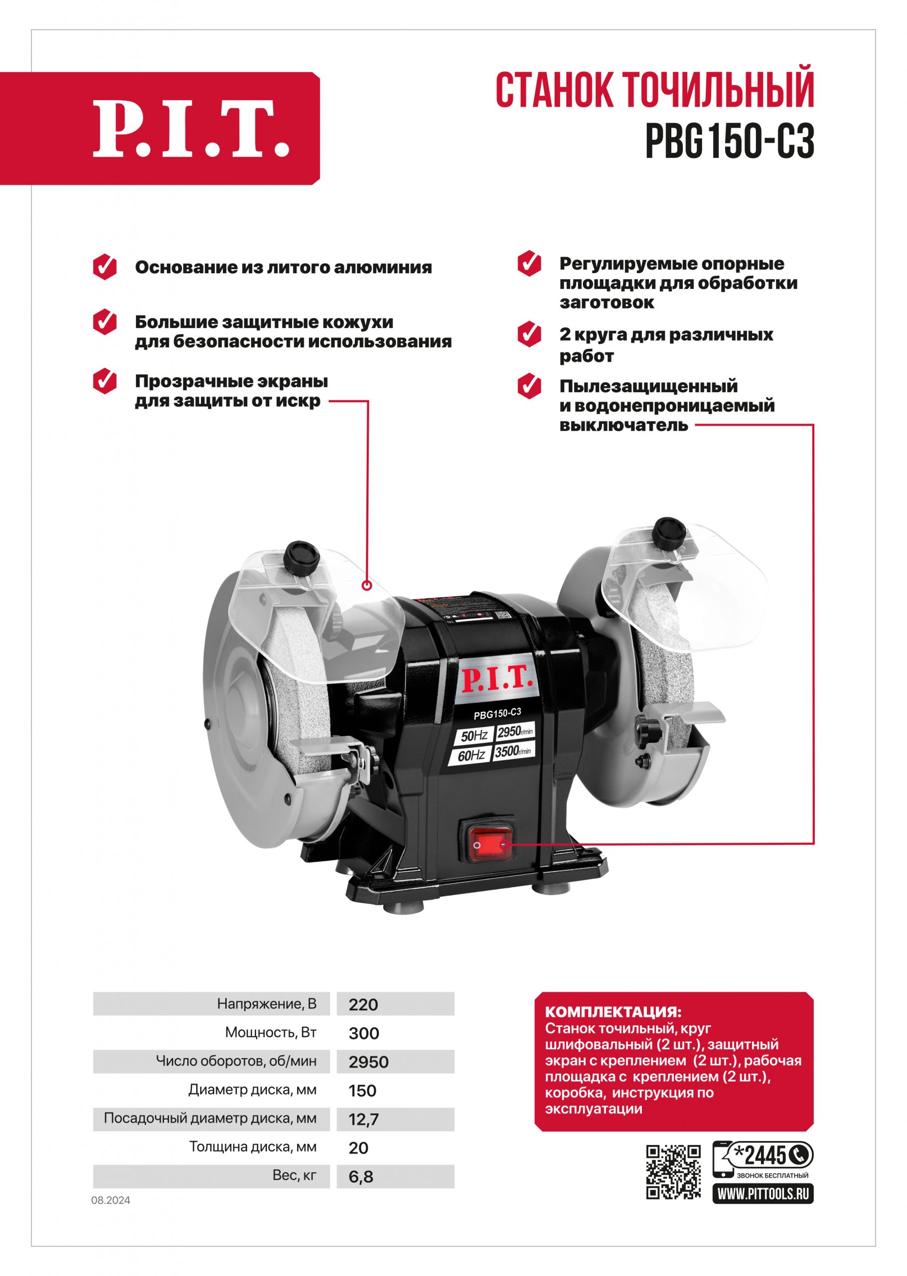 Точильный станок P.I.T. PBG150-C3 — надежный и функциональный инструмент, который станет незаменимым помощником в мастерской или гараже. Он предназначен для заточки слесарного и режущего инструмента, хозяйственного инвентаря, а также для шлифовки металлических заготовок, обеспечивая точный и аккуратный результат.