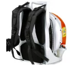 Воздушный поток достигает 67 м/с с объёмом 800 м³/ч, что позволяет эффективно очищать большие территории. Ранцевая система переноски с возможностью регулировки высоты и наклона обеспечивает удобство и минимальную нагрузку на спину при длительной работе.